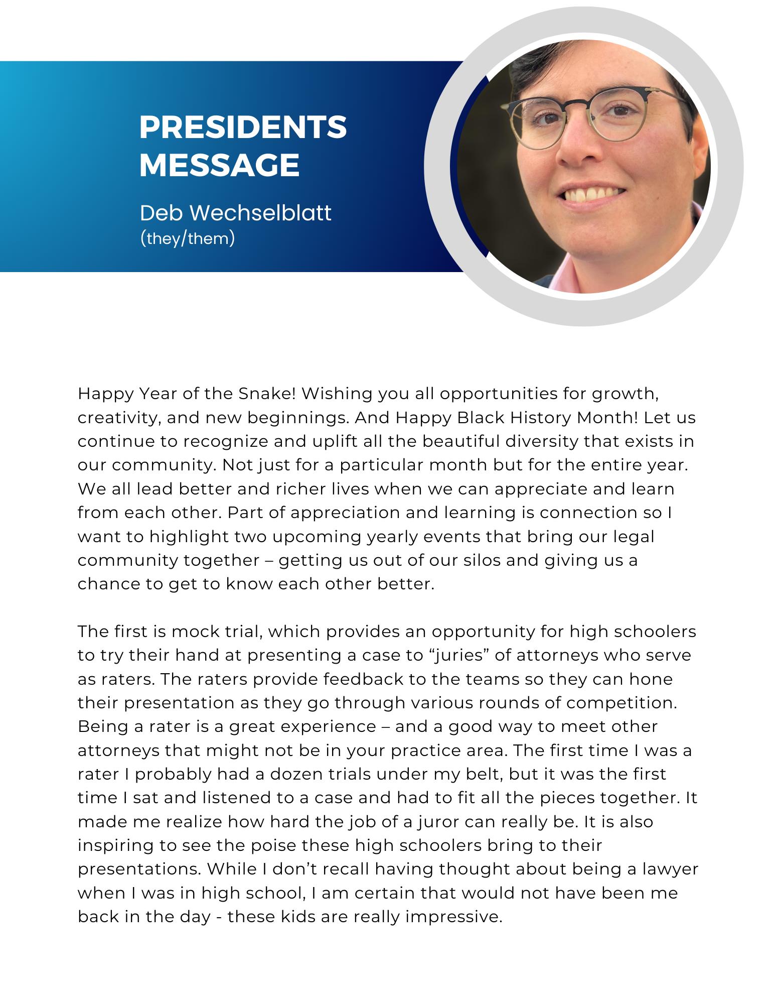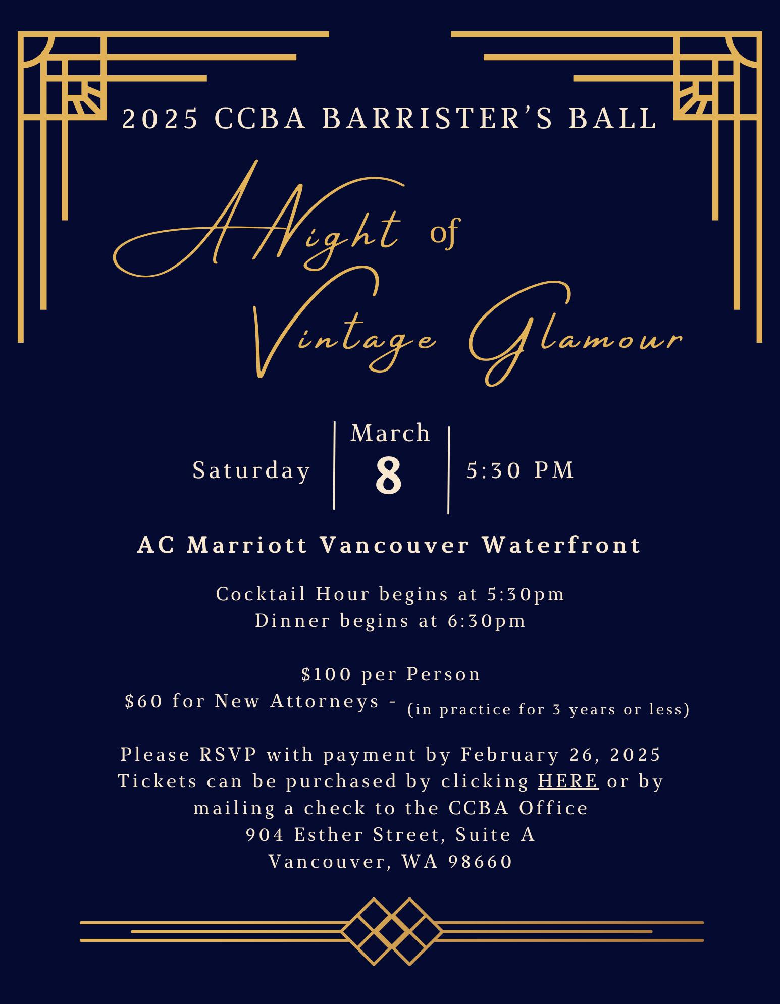 Barrister’s Ball 3/8/25: The theme is Vintage Hollywood. Seeking Sponsors! Please contact Lisa Darco to find out sponsorship opportunities. The Social Committee meets 1/21/25.