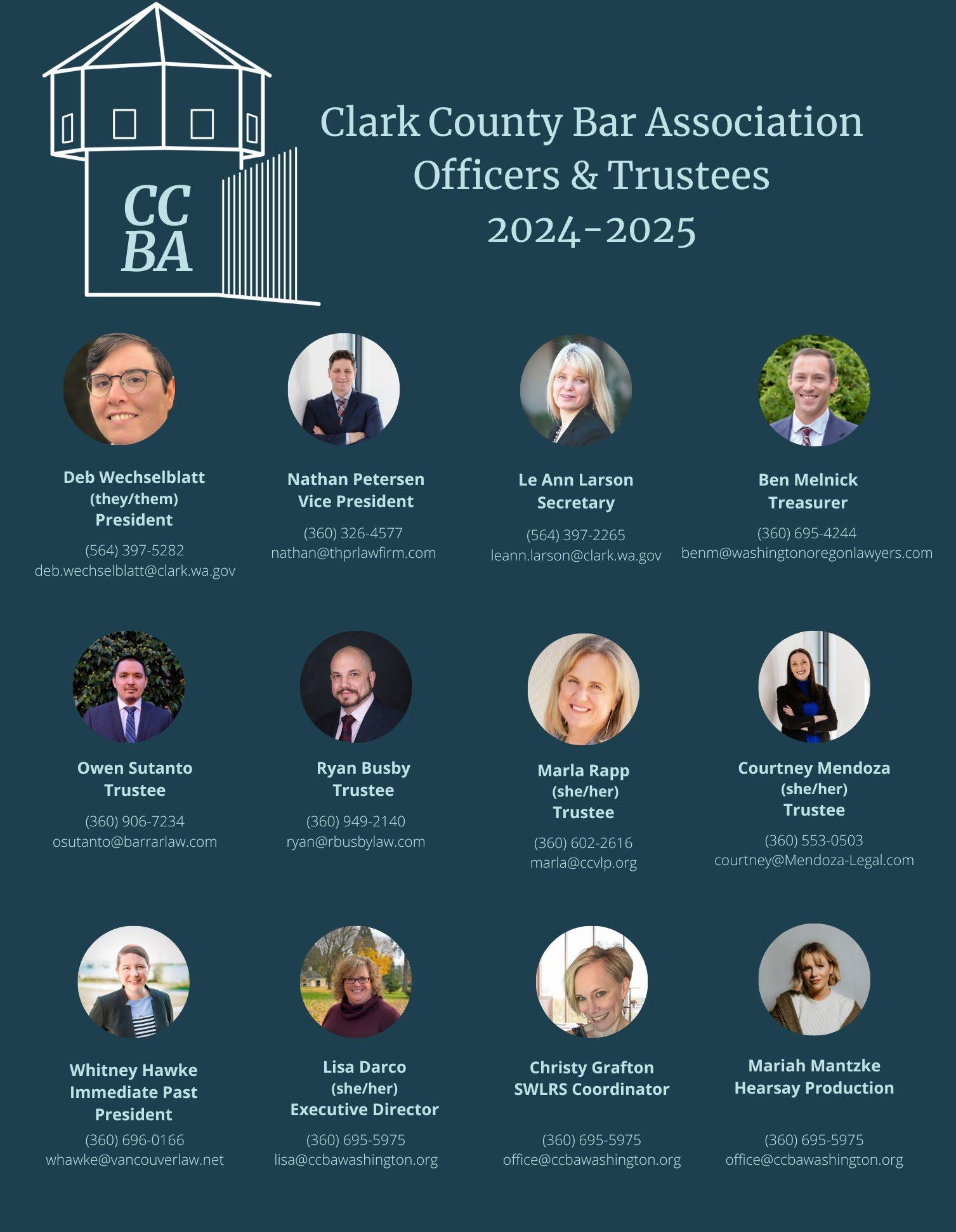 The Clark County Bar Association is a professional organization that serves to support our local attorney community through providing education and networking opportunities designed to enhance and foster better relationships within the local legal community.