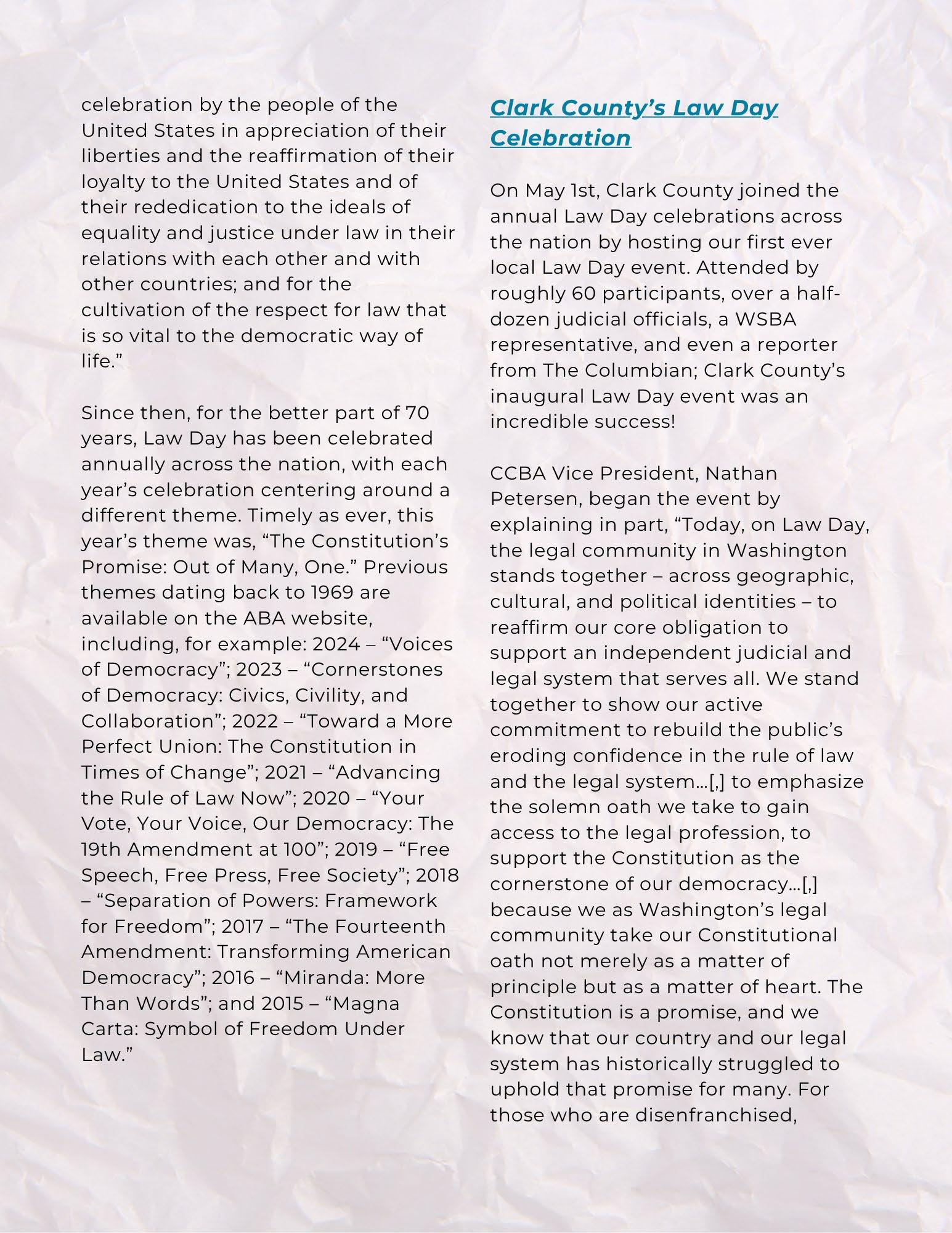 e. Law Day Email from WBSA – May 1st – We need to provide a name of a Judge and a location, then help advertise the event. Deb/Lisa will work on finding the Judge.