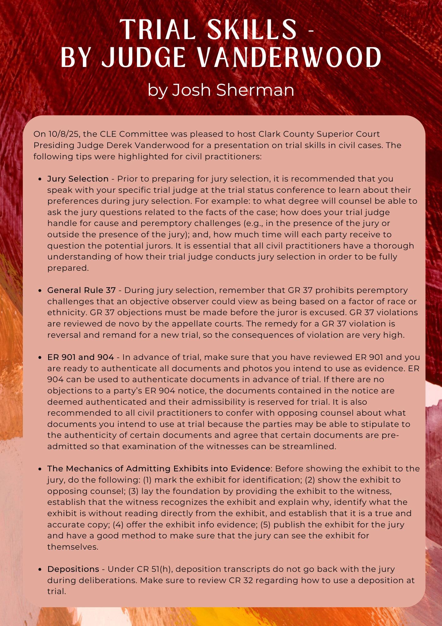 • Mock Trial has started. Practices started last week. This is the first in many years that Judge Lewis hasn’t authored. A Judge from Pierce County has authored this year’s case. It’s a big lift to create a packet like this. This year’s case centers around an auto accident related to texting where the driver is charged with vehicular manslaughter. Competition dates are February 18th-19th, 2026.