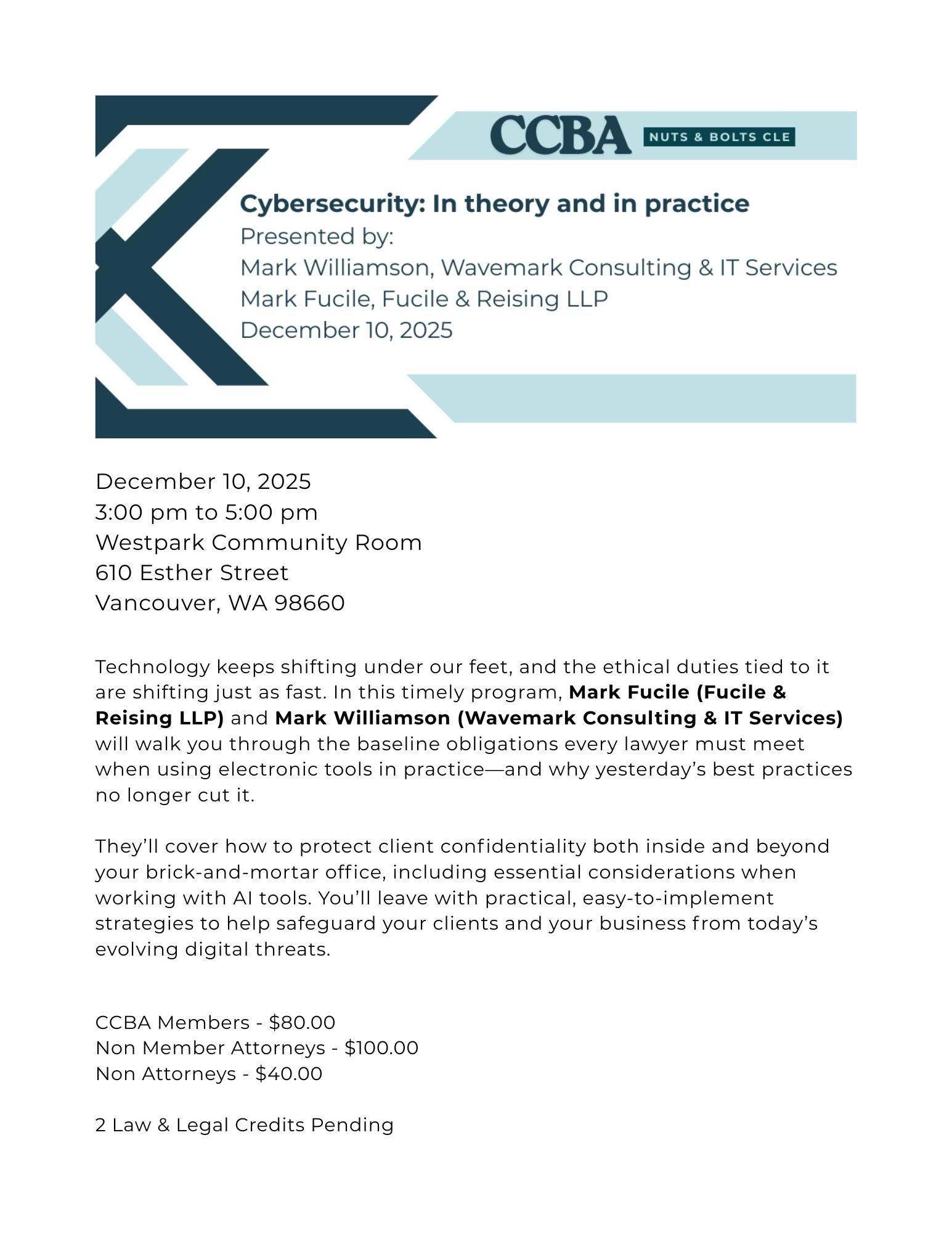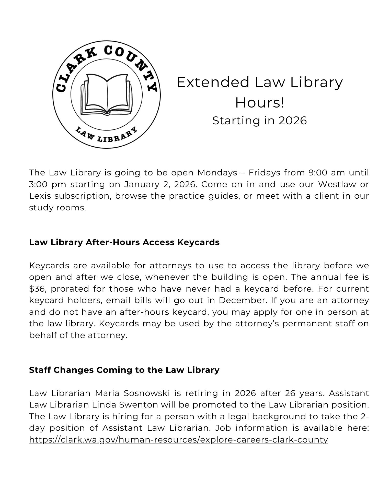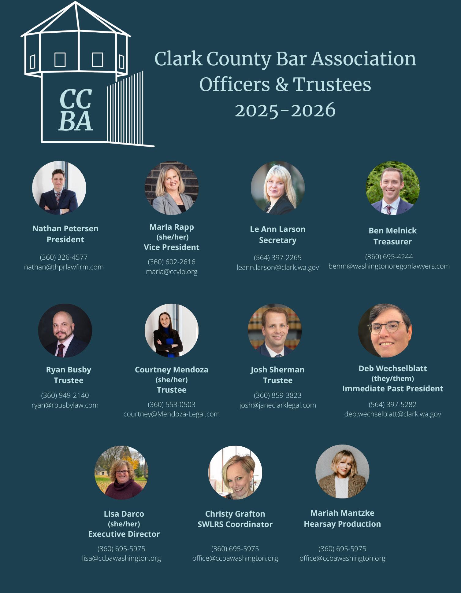 The Clark County Bar Association is a professional organization that serves to support our local attorney community through providing education and networking opportunities designed to enhance and foster better relationships within the local legal community.