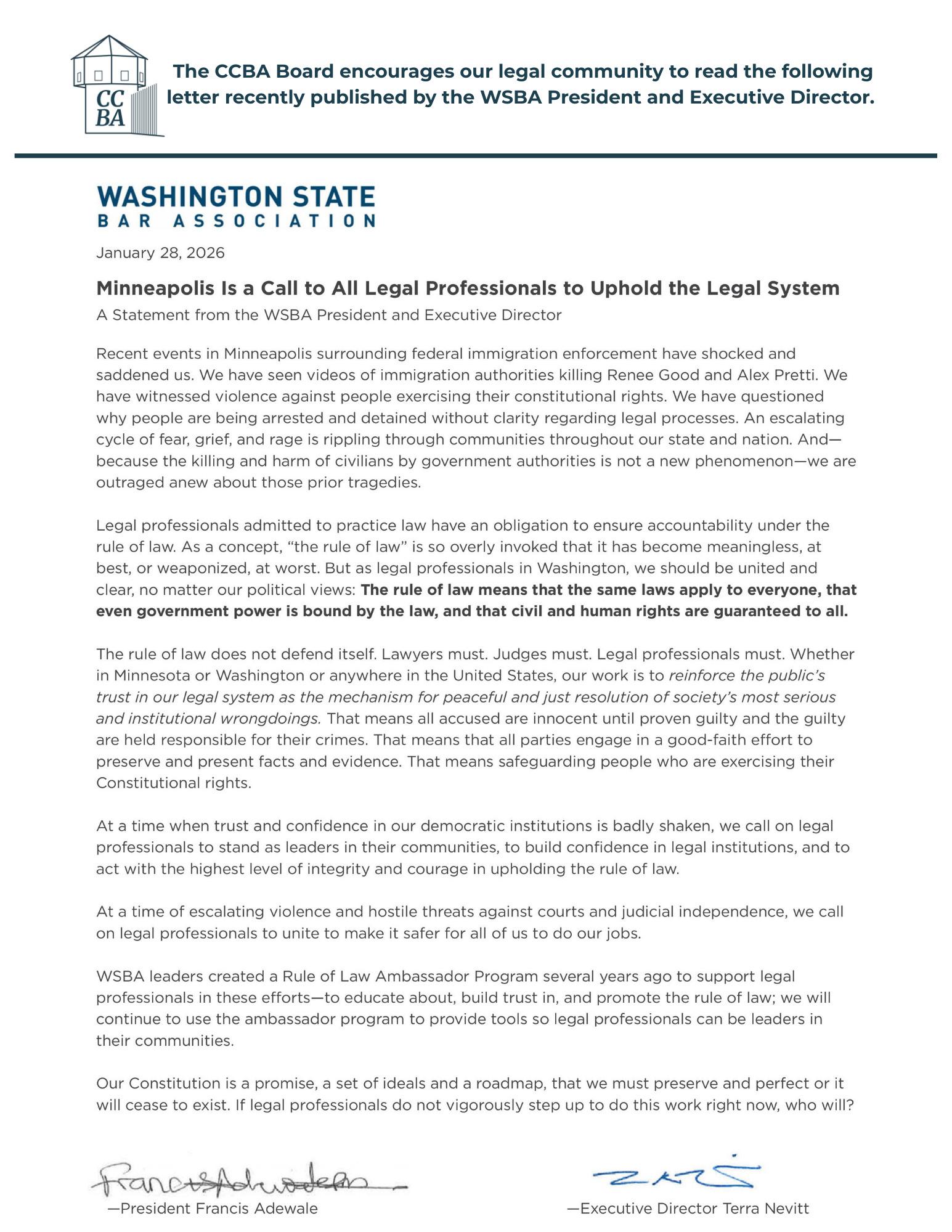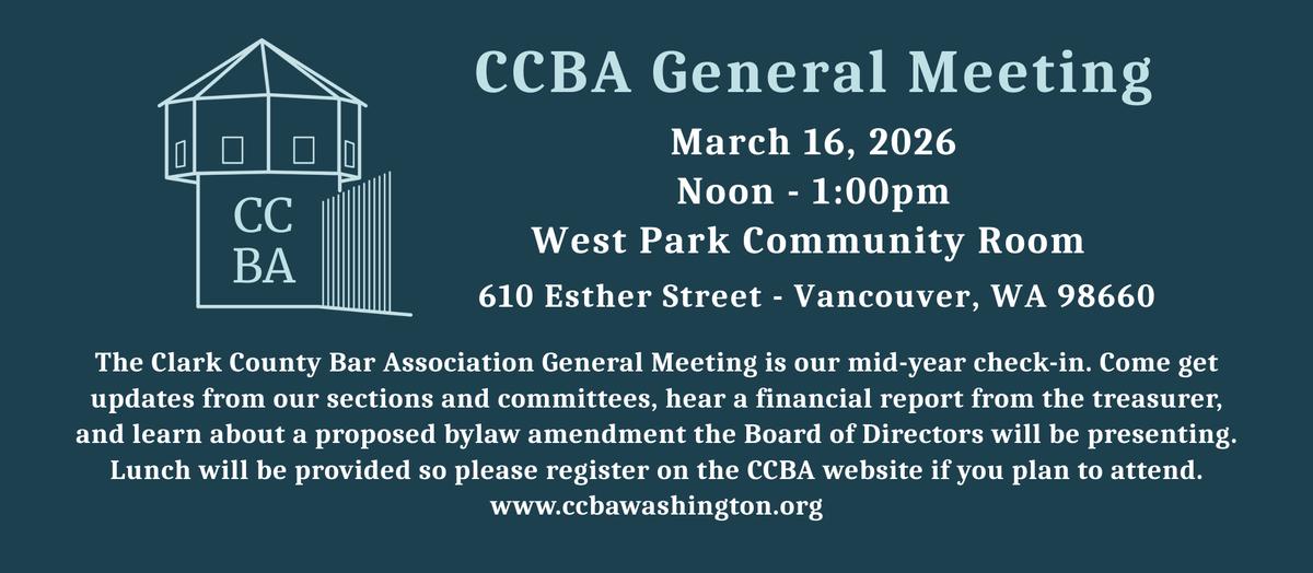 c. WSBA Speak Up for Justice event: The WSBA will host this event in Vancouver. Details to come.