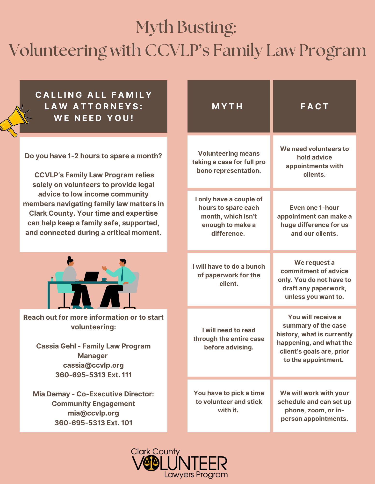 CCVLP’s Record Vacating and LFO clinic program is reopening. Any attorneys interested in volunteering in this clinic please email Mia Demay (mia@ccvlp.org). There will be a free training for attorneys interested in the subject area on Monday, March 2nd from 10:00-11:00 AM. Please reach out to Mia if you’d like to attend.