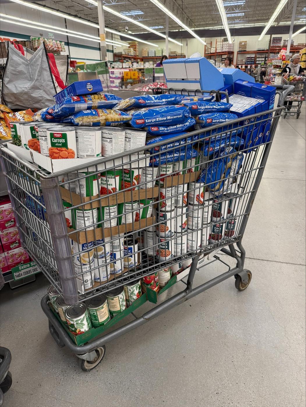 One of our volunteers shared a recap that said it plainly: “the committee collected $900 in cash donations and several boxes of pantry staples.” The funds went straight to work. Mila Boyd and Pam Finch handled the store run just the two of them. No entourage. No committees-within-committees. Just a long day of shopping, loading carts, unloading carts, and then doing it again.