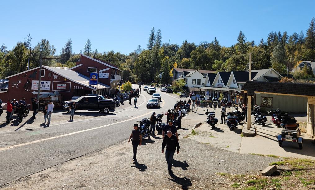 riders who needed a hand. The whole scene looked like one big family reunion. A loud, chaotic, leather scented family reunion. I’d have loved to stay for the opening ceremony, but once again I’d managed to sign myself up for the part of the event that pulls me away from the group ride. This time my mission was parking duty in North Fork. One road. Limited space. Guaranteed chaos when hundreds of bikes rolled in. It’s not glamorous work, but it’s necessary and it keeps businesses from having their driveways blocked by a wall of motorcycles.
