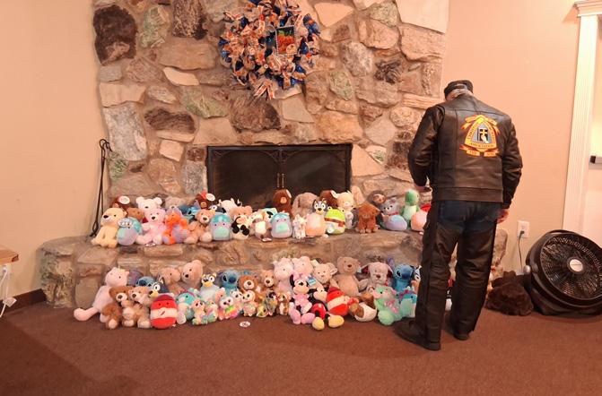 The night before the new date, a handful of us met at LifeWay Church in Lemoore to set things up. The fireplace filled with a mountain of teddy bears, big and small, soft and wild, staring out at the room like a fluffy army waiting for orders. A nearby table held blank cards for riders to write messages to