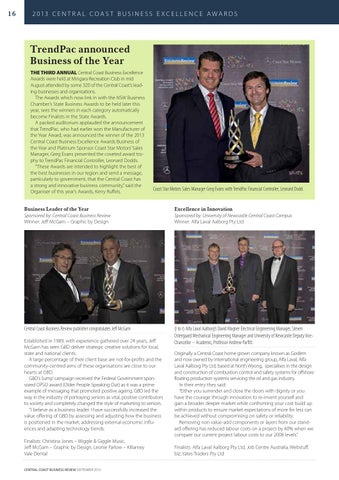 2 0 13 C E N T R A L C O A S T B U S I N E S S E X C E L L E N C E A W A R D S