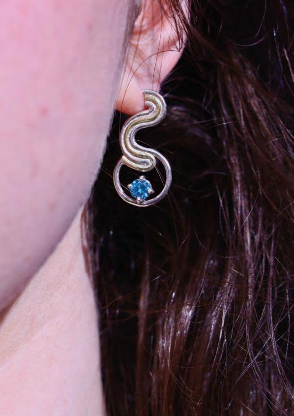 Each member designed their own body adornment piece, which was then photographed together to form the final collection. Ciorstaidh McKellar created a back piece inspired by bee wings, using Art Nouveau to craft a playful design that moves with the body. Amy Cowling redesigned a medical ring splint into a decorative, intricate ring inspired by the forest floor. Lastly, Dylan Cundall created a crown inspired by the Beltane festival, transforming foliage into a crown of flowers, leaves, and berries.