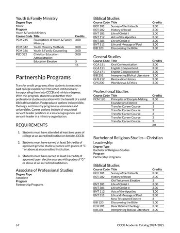CCCB provides degrees and certificates that equip students with a Bible- centered higher education within the context of a Christian worldview and helps students become productive, contributing members of their communities.