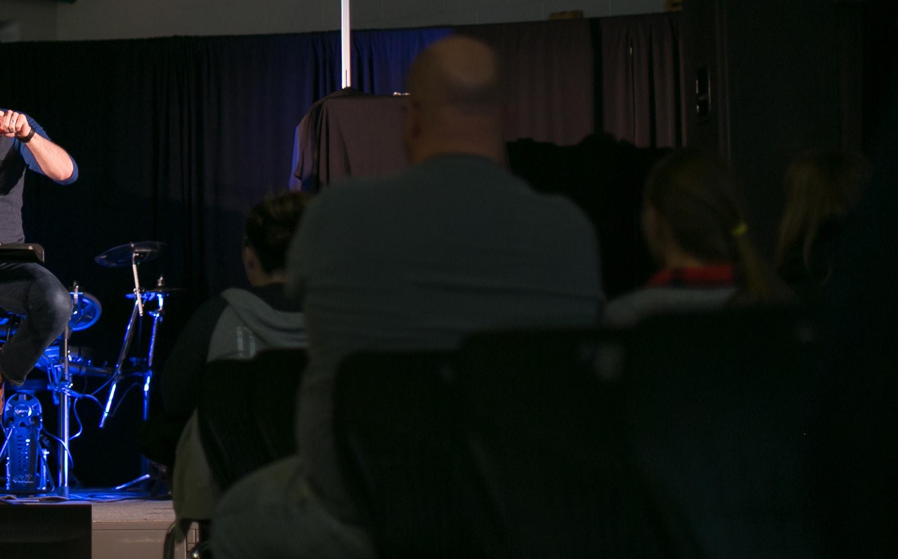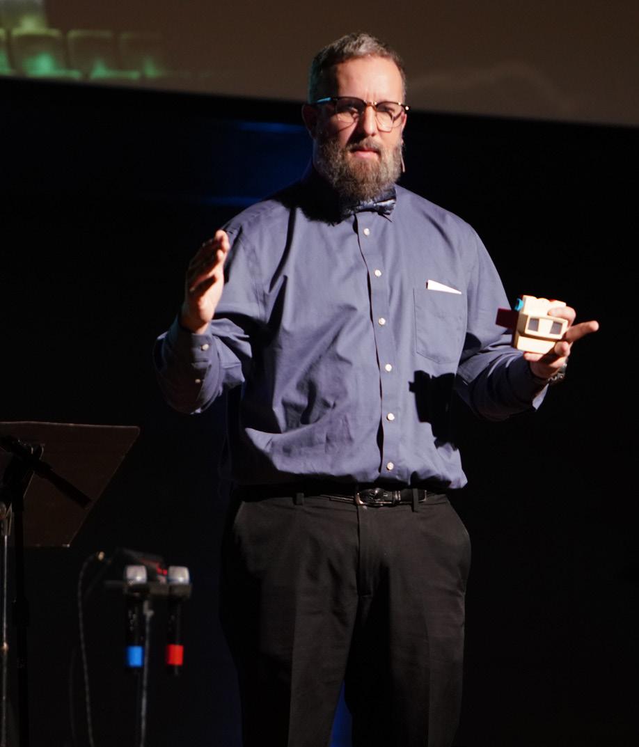 Aaron used a View-Master to illustrate a point during his senior sermon on Mark 3.