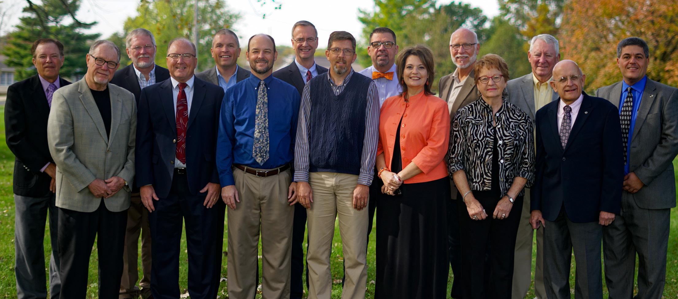 Board of Directors (left to right, pictured in Fall 2017): Dr. Dan Lowry (Warrensburg, MO), Mike Nobis (Quincy, IL), Dr. Arthur Rawlings (Columbia, MO), Tim Myers (Columbia, MO), Corey Mehaffy (Moberly, MO), Russ Cobb (Columbia, MO), Elmer Fuller (St. Charles, MO), Chris Reynolds (Eldon, MO), Dr. David Huskey (Omaha, NE), Alisa Kigar (Memphis, MO), Gene McCoy (Mountain Home, AR), Sue Gelven (Linn, MO), Dr. Dan Curtis (Warrensburg, MO), Ron Self (Moberly, MO), and Dr. David Fincher, President (Moberly, MO).