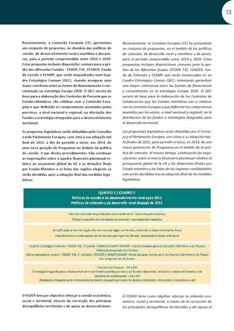 Recentemente, a Comissão Europeia (CE) apresentou um conjunto de propostas, no domínio das políticas de coesão, de desenvolvimento rural e marítima e das pescas, para o período compreendido entre 2014 e 2020. Estas propostas incluem disposições comuns para a gestão dos diferentes Fundos - FEDER, FSE, FEADER, Fundo de Coesão e FEAMP, que serão enquadrados num Quadro Estratégico Comum (QEC), visando assegurar uma maior coerência entre as fontes de financiamento e concentração na estratégia Europa 2020. O QEC servirá de base para a elaboração dos Contratos de Parceria que os Estados-Membros vão celebrar com a Comissão Europeia e que definirão os compromissos assumidos pelos parceiros, a nível nacional e regional, na afectação dos Fundos a estratégias integradas para o desenvolvimento territorial.