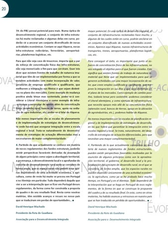 mayor potencial. En una óptica de desarrollo regional, el conjunto de infraestructuras reclamadas hace mucho, y algunas de las cuales están en curso, podrán anclarse en un conjunto diversificado de nuevas actividades económicas. Aparece aquí Alqueva, nuevas infraestructuras de transportes, trenes, aeroportuarias, plataformas logísticas, etc.
