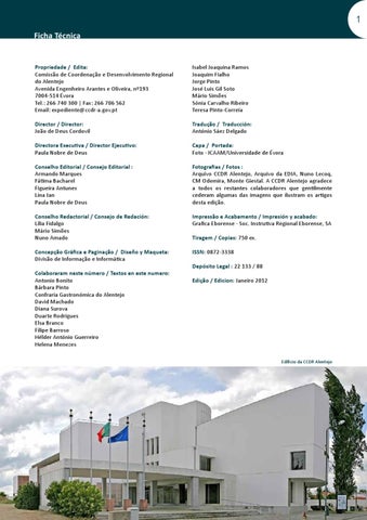 Propriedade / Edita: Comissão de Coordenação e Desenvolvimento Regional do Alentejo Avenida Engenheiro Arantes e Oliveira, nº193 7004-514 Évora Tel.: 266 740 300 | Fax: 266 706 562 Email: expediente@ccdr-a.gov.pt