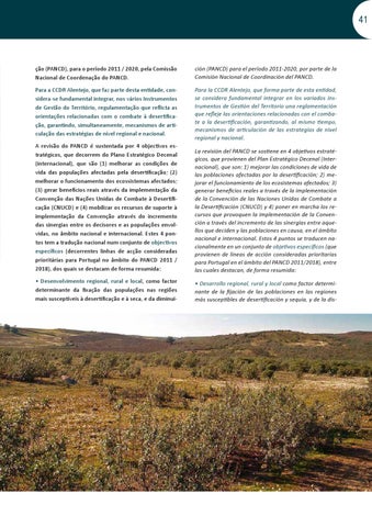 Para la CCDR Alentejo, que forma parte de esta entidad, se considera fundamental integrar en los variados instrumentos de Gestión del Territorio una reglamentación que refleje las orientaciones relacionadas con el combate a la desertificación, garantizando, al mismo tiempo, mecanismos de articulación de las estrategias de nivel regional y nacional.