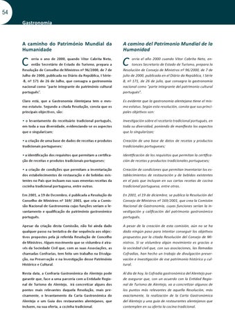 Es evidente que la gastronomía alentejana tiene el mismo estatus. Según esta resolución, consta que sus principales objetivos son: