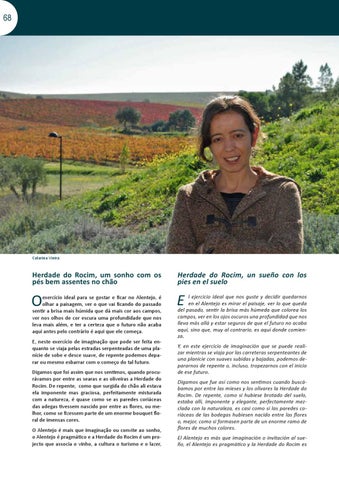 l ejercicio ideal que nos guste y decidir quedarnos en el Alentejo es mirar el paisaje, ver lo que queda del pasado, sentir la brisa más húmeda que colorea los campos, ver en los ojos oscuros una profundidad que nos lleva más allá y estar seguros de que el futuro no acaba aquí, sino que, muy al contrario, es aquí donde comienza. Y, en este ejercicio de imaginación que se puede realizar mientras se viaja por las carreteras serpenteantes de una planicie con suaves subidas y bajadas, podemos depararnos de repente o, incluso, tropezarnos con el inicio de ese futuro. Digamos que fue así como nos sentimos cuando buscábamos por entre las mieses y los olivares la Herdade do Rocim. De repente, como si hubiese brotado del suelo, estaba allí, imponente y elegante, perfectamente mezclada con la naturaleza, es casi como si las paredes coriáceas de las bodegas hubiesen nacido entre las flores o, mejor, como si formasen parte de un enorme ramo de flores de muchos colores. El Alentejo es más que imaginación o invitación al sueño, el Alentejo es pragmático y la Herdade do Rocim es