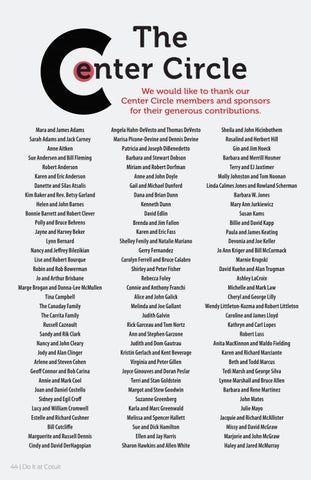 The enter Circle We would like to thank our Center Circle members and sponsors for their generous contributions. Mara and James Adams Sarah Adams and Jack Carney Anne Aitken Sue Andersen and Bill Fleming Robert Anderson Karen and Eric Anderson Danette and Silas Atsalis Kim Baker and Rev. Betsy Garland Helen and John Barnes Bonnie Barrett and Robert Clever Polly and Bruce Behrens Jayne and Harvey Beker Lynn Bernard Nancy and Jeffrey Bilezikian Lise and Robert Bourque Robin and Rob Bowerman Jo and Arthur Brisbane Marge Brogan and Donna-Lee McMullen Tina Campbell The Canaday Family The Carrita Family Russell Cazeault Sandy and Rik Clark Nancy and John Cleary Jody and Alan Clinger Arlene and Steven Cohen Geoff Connor and Bob Carina Annie and Mark Cool Joan and Daniel Costello Sidney and Egil Croff Lucy and William Cromwell Estelle and Richard Cushner Bill Cutcliffe Marguerite and Russell Dennis Cindy and David DerHagopian 44 | Do It at Cotuit