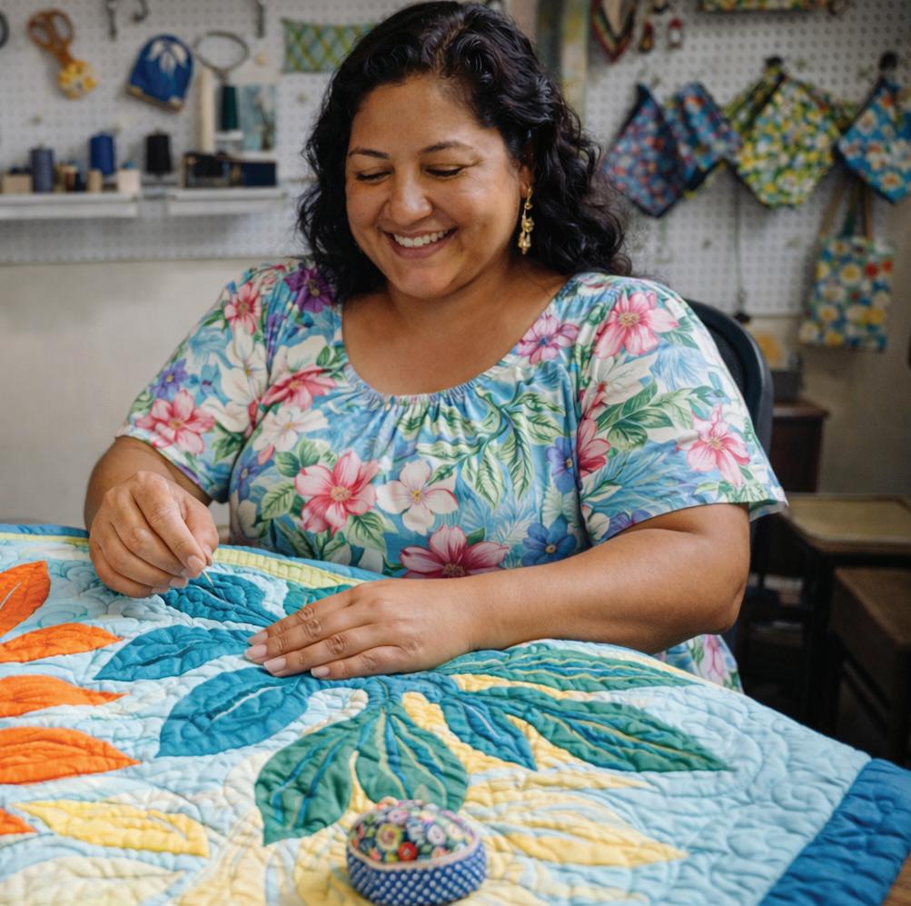 Sandy also discovered a way to grow her income through her talent as a seamstress, creating Hawaiian blankets, pillowcases, and kitchen items that she now sells alongside her son.