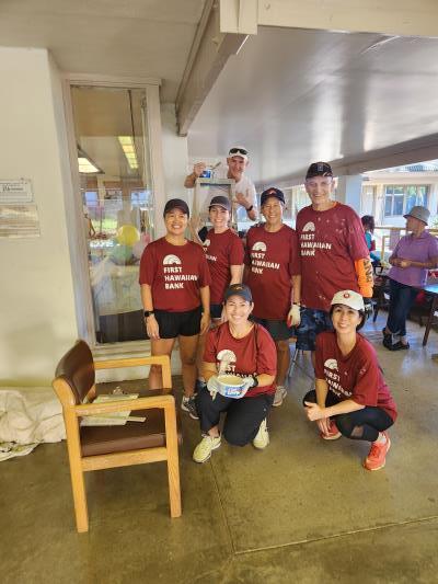 "Hardworking First Hawaiian Bank employees volunteered their time on Saturday, November 15, 2025, and painted and cleaned the backside of the senior center, the closets across the big kitchen, the patio area, and Ewa side of the senior center A big mahalo for their loving efforts!"