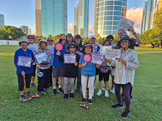 “Congratulations to everyone who participated in the Aloha Shoyu Ohana Gateball Tomodachi Challenge It was a match filled with exciting near impossible shots made, lively sparking, near misses, and laughter