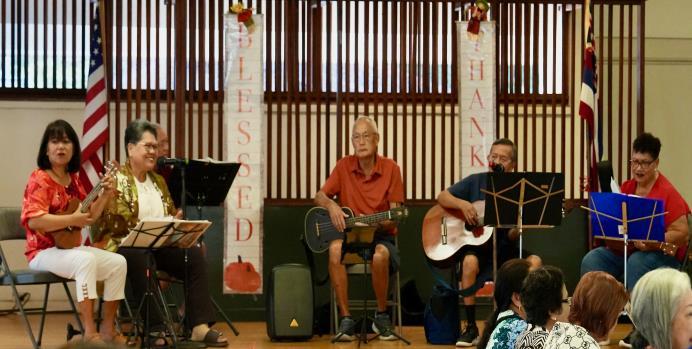 November 20th: Our morning entertainment by the Pearl City Community Church with MC Roy Inouye was plagued with many technical audio difficulties that they were not able to entertain us properly as they hoped for We had few group singing as they played their ukuleles Ron Oshiro did “Amazing Grace” in sign language A few hula numbers were performed with their IPhone The ladies were able to perform their last hula to the famous Japanese song, “Kawa no Nagare no Yoo Ni” (“Like the flow of the River”) by Misora Hibari. It was a heartwarming, beautifully executed hula! Though many technical issues, they did a great job. After this, the ONC gave members a surprise Turkey Subway sandwich w/pumpkin pie!