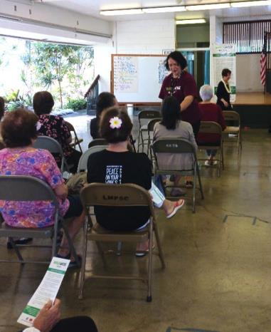 Activities in April - On April 7, Mellow Friends, a group of fantastic singers, showed off their talent by singing songs such as “Can’t Help Falling in Love With You”; “Honolulu City Lights”; God Bless the USA”; and many more. On April 14, Angie Ishihara from Walk Wise Hawaii discussed pedestrian safety and the importance of choosing the safest route to your destination On April 21, the versatile group from Project Dana performed a variety of dances with instruments and even had audience participation with the popular Tanko Bushi, Bon Odori style