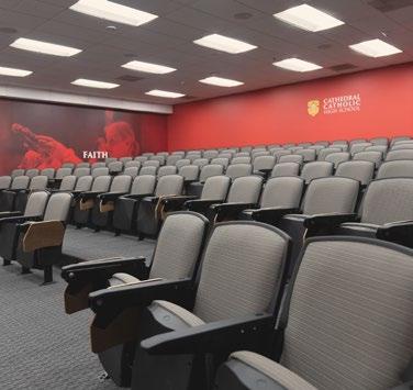 (4) Refreshed Assisi Lecture Hall The lecture hall in the Assisi building has been enhanced with new carpet, individual seating and walls adorned with graphics representing our four core values: character, faith, knowledge and responsibility