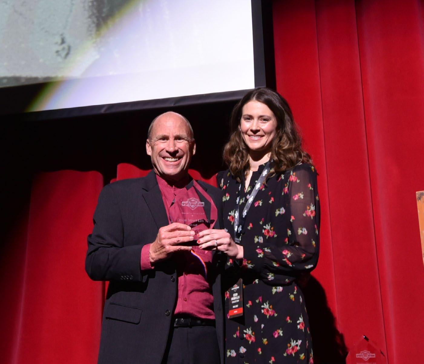 The master of ceremonies, John Montali ‘88, invited each inductee to the stage to accept their award. As the honoree approached the stage, a biography of their life and achievements played along with a montage of photographs from their Uni/Cathedral Catholic days and athletic careers. Each inductee received their award from their former high school coach or from the director of alumni, Sean Doyle ‘80 and assistant director, Anne Pickard Majer ‘95. Former coaches present were softball coach Margaret Mauro, girls golf coach Chris Grazier, baseball coach Gary Remiker ‘90 and of course, football coach Sean Doyle ‘80.