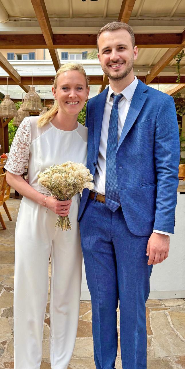 De collègues, ils deviennent amis, puis… « On a commencé à se voir en dehors du travail… et c’est allé très vite, on a emménagé ensemble au mois d’octobre suivant», raconte Caroline. Sept ans plus tard, leur histoire continue de s’écrire. Aujourd’hui, Nicolas est ingénieur, Caroline médiatrice scientifique, ils vivent ensemble toujours à Golfe Juan et travaillent tous les deux sur la toute proche technopole de Sophia Antipolis. Leur mariage, célébré il y a six mois -thème maritime bien sûr de rigueur- a rendu hommage à leur rencontre : « Après la mairie, on a porté un toast sur le port avec toutes les équipes, c’était symbolique pour nous et notre histoire », confie Caroline. À 32 et 29 ans, le vieux port de Golfe-Juan demeure leur point d’ancrage, témoin d’un amour né sur ses quais. w
