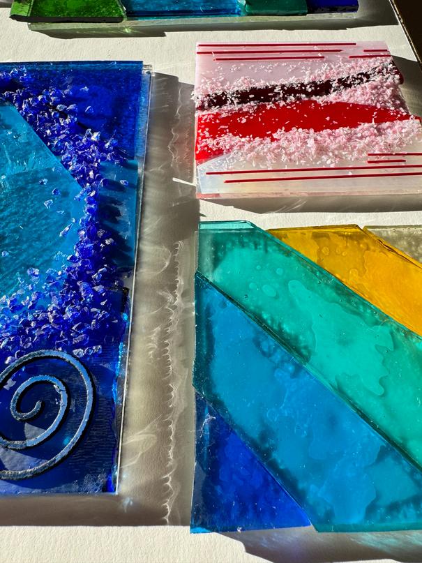 Create your own colorful, custom fused glass artwork! In this introduction to glass fusing, students will design their own glass tiles using colorful sheet glass, powdered glass, and more Their creations will be fused into a finished glass tile with the option to slump it into a mold to create a bowl or tray!
