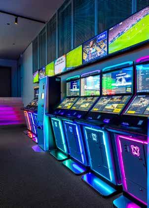 Memphis et donne une bulle de fantaisie et d’excentricité au casino avec un style, des formes et des coloris forts en énergie. Le Stadium avec son entrée spectaculaire à l’effet tunnel attise la curiosité des clients et les guide vers l’intérieur. Des jeux de lumières vibrantes et des écrans animés créent un appel visuel inattendu. Des rideaux à « effet » métallique s’adaptent parfaitement au lieu brut et se confrontent à des coloris vibrants pour créer une scène visuelle innovante. Autre nouveauté majeure : la présence de sept bornes de paris sportifs de la Loterie nationale. Une collaboration qui va permettre de jouer sur des machines flambant neuves, et de parier sur les résultats d’une trentaine de sports différents : du football au golf, du tennis au baseball, du basketball à la Formule 1, en passant par le ski alpin, le handball, le cyclisme ou même les Jeux olympiques. Pour les passionnés de son, chaque vendredi et samedi soir, des DJettes aux platines vont électriser l'Offside Bar & Games.