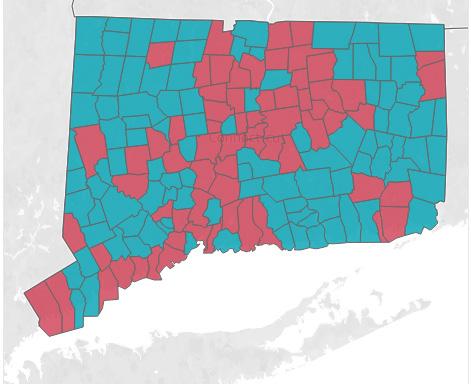 Town Clerks in CT Red: Appointed, Blue: Elected