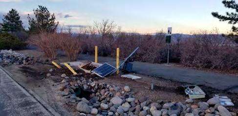 On February 19, 2024, at approximately 5:05pm, a vehicle came through the front gate and was traveling on ArrowCreek Parkway towards the Residents’ Center. Just before Shadow Dancer Drive, the driver fell asleep and the vehicle went off the road, resulting in damage to the HOA speed radar camera. The NV Energy box was also damaged, as well as two cement bollards were knocked over. The driver was shook up but, thankfully, had no injuries. The car, unfortunately, had major body damage.