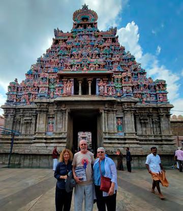 ▲ Harvey & Mary Katz with Peggy Lowndes, former AC resident, at Sri Ranganatha Swamy Temple, Tamil Nadu, India