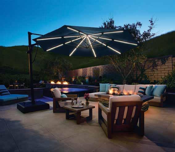 www.arrowcreek.com | September 2023 | 33 Mountain Home Center | MountainHomeCenter.com 11403 Brockway Road, Truckee CA | 530.587.6681 CA Lic #775721 NV Lic #075038 DAY AND NIGHT. The right umbrella is the right accessory for outdoor living, day and night. In stock and floor model sale happening now through the end of the season, talk with our team.