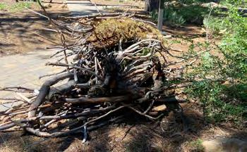 Volunteers raked up pine needles and pine cones around building structures and in common areas throughout our community. Volunteers also collected discarded construction materials, branches and wood obstructing the flow of water in our creeks and garbage thrown in and around dumpster enclosures. Approximately, 5-6 dumpsters were filled with green waste.
