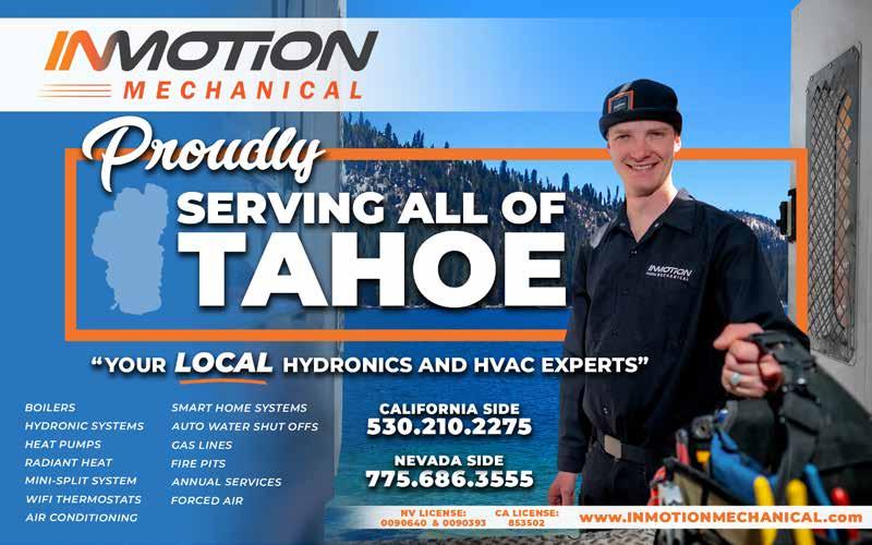 tahoedonner.com/feedback STAY IN THE KNOW. SIGN UP FOR WEEKLY EMAILS: TAHOEDONNER.COM/SUBSCRIBE • Locally owned HVAC Company • 30 years experience • Specialize in repair, maintenance & replacement • Service all makes & models • We understand the challenges of second home owners www.MS-AC.com NV LICENSE #82386 | CA LICENSE #488050 775.843.7930 debbiec@ms-ac.com FREE! Filter with Service! QUALITY WORKMANSHIP CLEANLINESS & CUSTOMER SATISFACTION Serving Truckee/Lake Tahoe Residential • Commercial Interior and Exterior Specializing in Staining Wood Restoration Superior Finish Painting Remodels and New Construction 530.550.7938 PO Box 11107, Truckee, CA 96162 BONDED & INSURED • CA LIC #764916