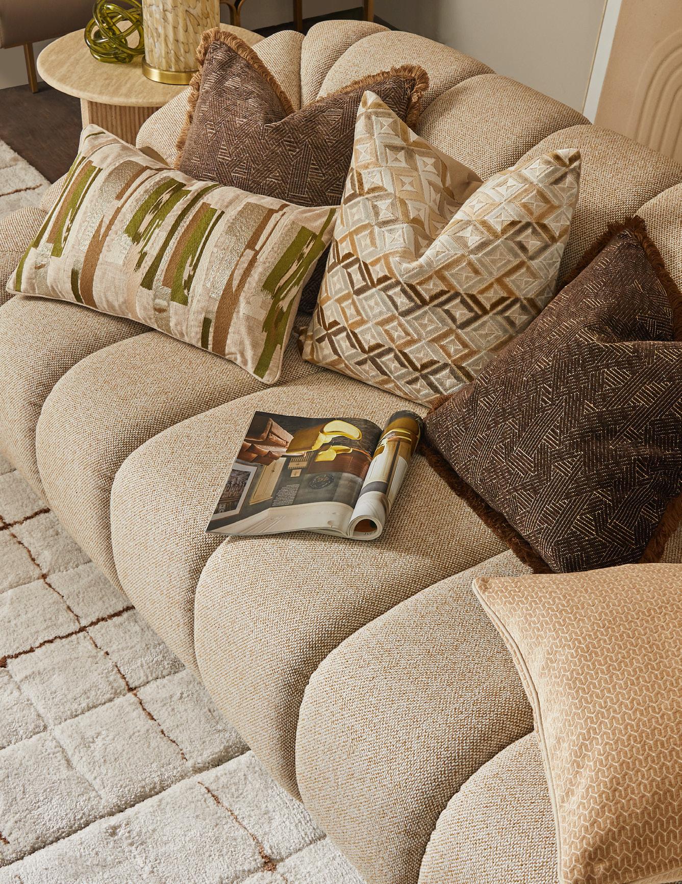 Cobertor alimentos bambú $625 Individual fibra $175 Vajilla del mar, pez, coral, melamina -Plato llano $285 -Plato postre pez $235 -Plato postre coral $250 -Mini plato $150 -Platos postre y llano, disponibles también en colores blanco y salmón Haus aro de servilleta concha $750 Servilleta lino $385 VIENE DE PORTADA Cuadro Clem 31”x59” $7,400 Margot jarrón -14” $2,325 -19” $5,525 -24” $5,875 Rama $500 Mesa comedor Jolie, madera $32,700 Lyra jarrón, rattan natural -13” $2,225 -17” $2,550 Coaster florero Slat 5” $575 -Alto 12” $1,800 Caja decorativa Cayman, bambú -Rectangular 8”x4.5” $1,325 -Cuadrada 8” $1,350 PortaVela Lotus -5” $1,300 -7” $1,725 Mara Ottoman $4,500 Caja decorativa Dots $2,375