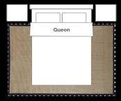 • Las alfombras pueden ser tan grandes que cubran toda el área de la cama, pero deben sobresalir por lo menos 12” a cada lado de esta.