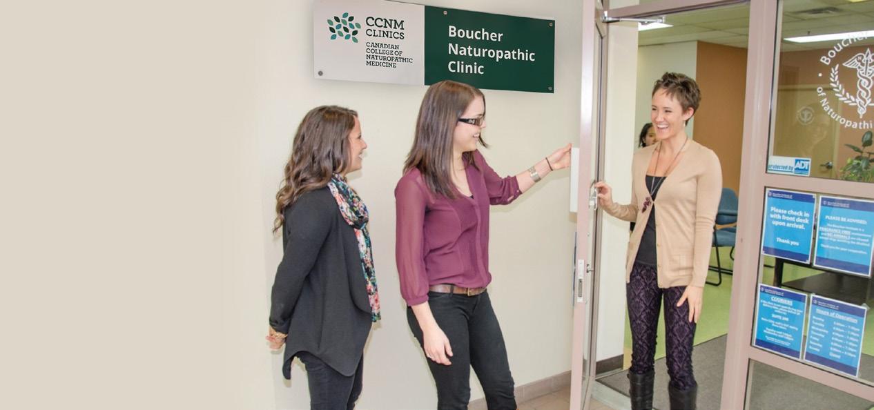 health-care settings. This responsibility extends beyond the classroom – in addition to increased opportunities for faculty development, CCNM fosters an environment in which lifelong learning and continuing education are critical components of professional success. Equally essential are clinical education and patient care. CCNM’s onsite teaching clinics and community health centres provide students with immersive, hands - on learning experiences while delivering excellent naturopathic health care to diverse and underserved populations throughout Ontario and British Columbia. The dynamic integration of the academic and clinical spheres at the College is instrumental in socializing students in the role of naturopathic doctors and demonstrates the value of practical, experiential learning as a catalyst for self-assurance and competence in practice.