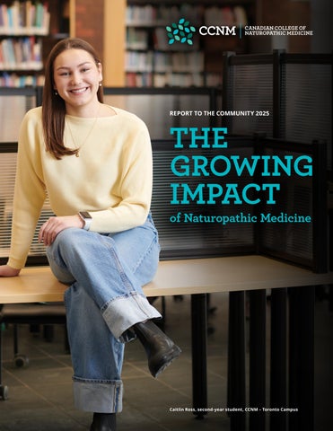 impact across multiple domains, including research, integrative care settings, public health and policy, academia, and natural health industries. By conferring students with adaptable skill sets, robust clinical training, and a wide range of treatment tools, CCNM ensures that students are prepared to meet diverse professional demands while maintaining a patient- centred perspective grounded in preventative and holistic care.