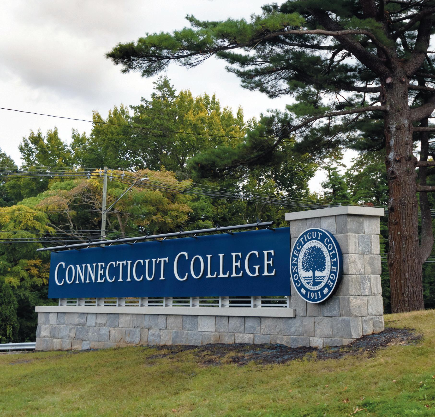 The main entrance to Connecticut College got quite the upgrade this fall: a double-sided illuminated sign with a masonry stone base was installed in September. The new entrance marker measures more than 32 feet long and stands nearly 6 feet high, making it clearly visible from