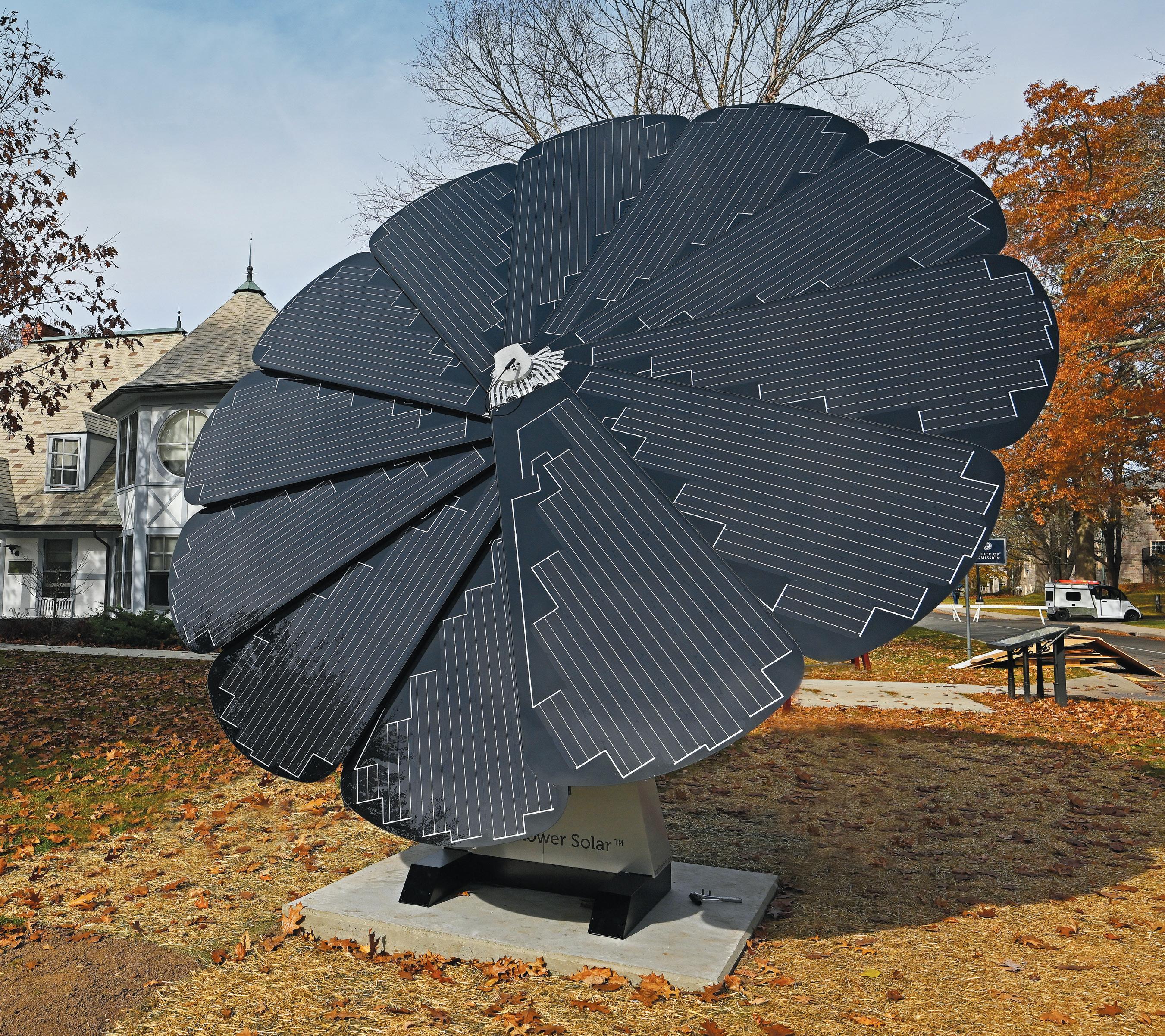 Conn’s SmartFlower, connected to the Woodworth House building, is expected to produce 5,000 kWh each year, or about 40% of the electricity needs of the building.