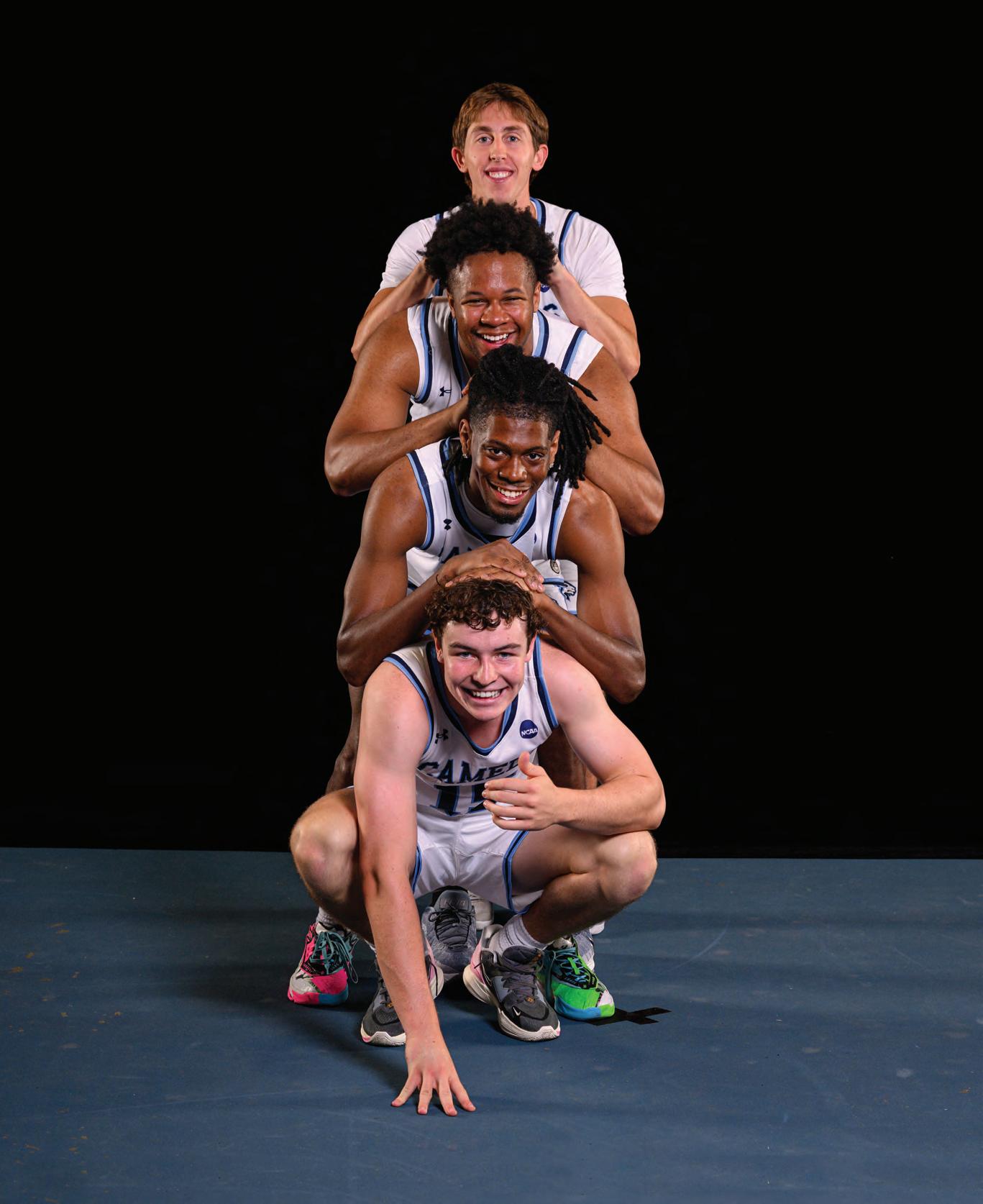 Men’s Basketball players (from top) Alden Doran ’28, Edward Harrison ’28, PJ Johnson Jr. ’28 and Bo Moody ’28 have fun during Media Day for winter sports teams.