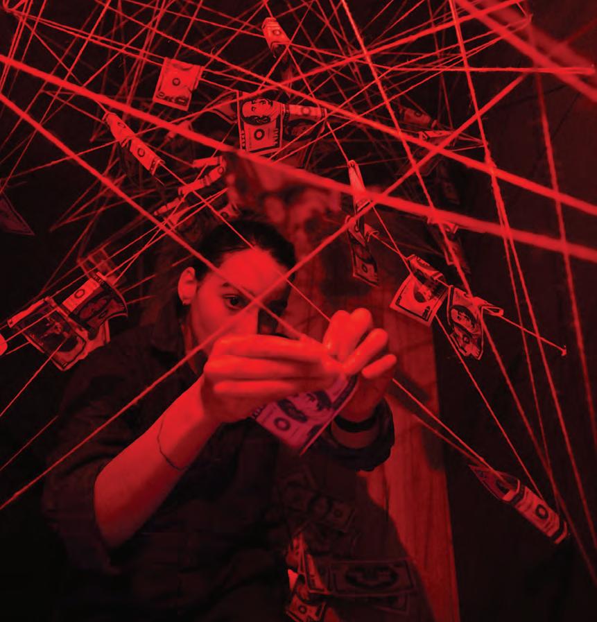 InNovember, students in the Department of Theater performed Anne Carson’s Antigonick, a translation of Greek playwright Sophocles’ 2,500-yearold Athenian tragedy Antigone, in Tansill Theater at Hillyer Hall. The production, in addition to being visually powerful, was unique, says Professor of Theater David Jaffe, as the rehearsal process and performance were designed as a full fourcredit course under Jaffe’s direction.