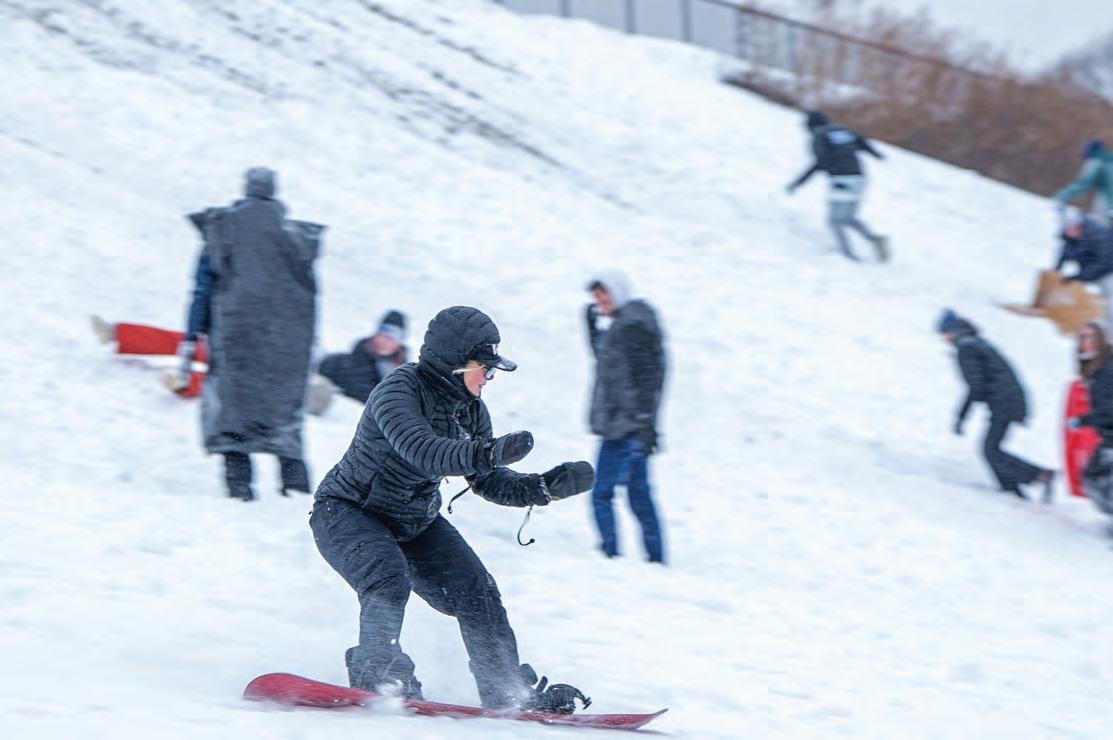 On this page: More than a foot of snow fell on campus during Winter Storm Fern in January.