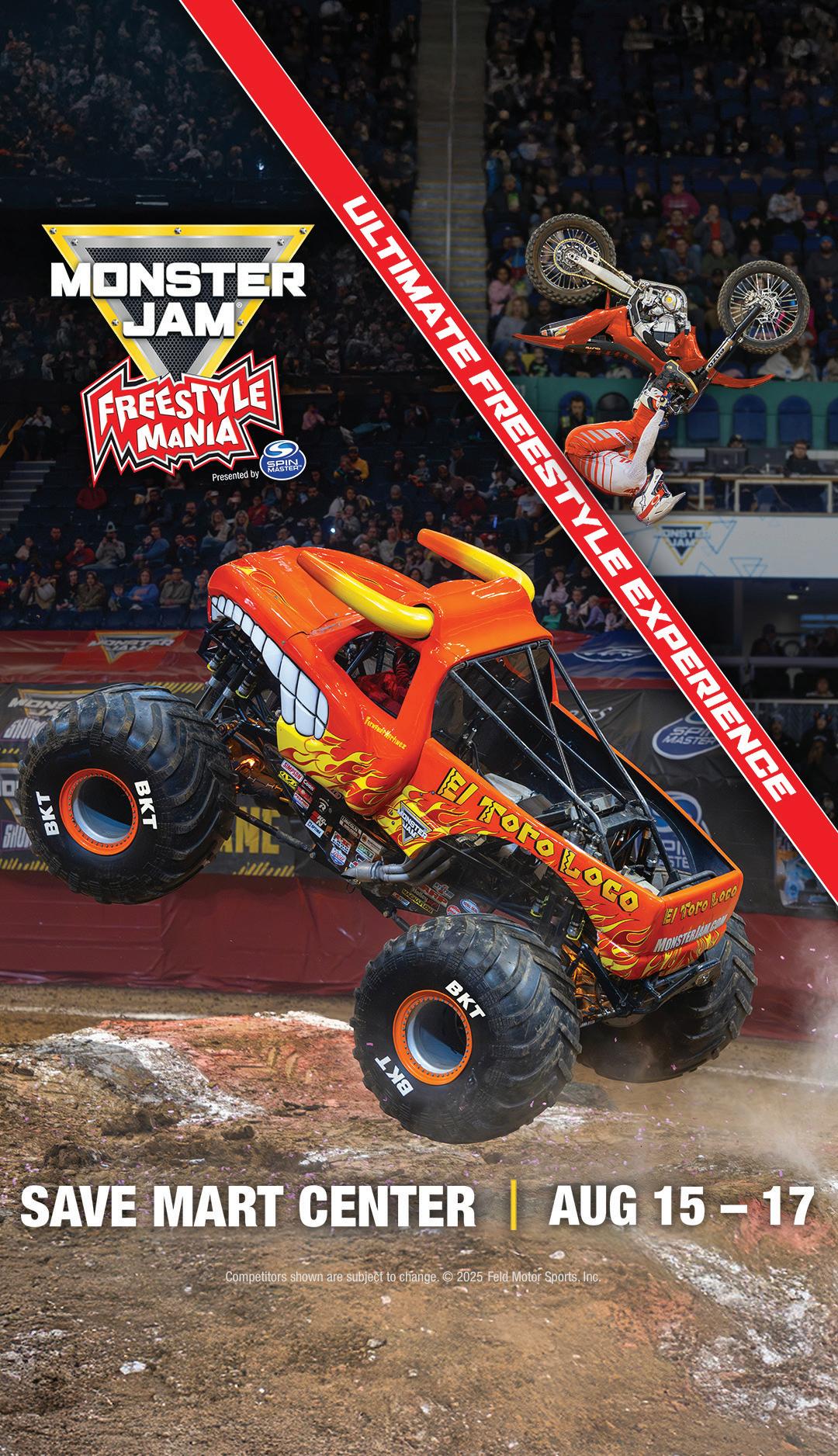 MONSTER JAM FREESTYLE MANIA It’s time to fire up the engines once again as the most action-packed motorsports experience for families in the world returns to town featuring world-class athletes locked in intense competitions of speed and skill. 1 p.m. Tickets: $36–$107. Save Mart Center, 2650 E. Shaw Avenue, Fresno. (559) 278-3400