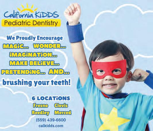 In first place, flashing big smiles is California KiDDS Pediatric Dentistry (Clovis, Fresno, Merced, Reedley, 559-4396600) with six convenient Valley locations. Brushing into second is Powell Pediatric Dentistry (Clovis, Fresno, Visalia, 599-431-9701).