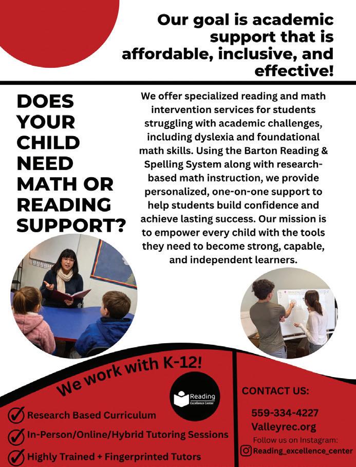 Central California Parent reserves the right to refuse any advertising for any reason. The opinions expressed by contributors or writers do not necessarily reflect the opinions of this magazine. All editorial information and display advertising are copyrighted. Reproduction in whole or part without written permission is prohibited. Distribution of this paper does not constitute an endorsement of information, products, or services. Neither the advertisers nor the publisher will be responsible for misinformation, typographical errors, omissions, etc. herein contained.
